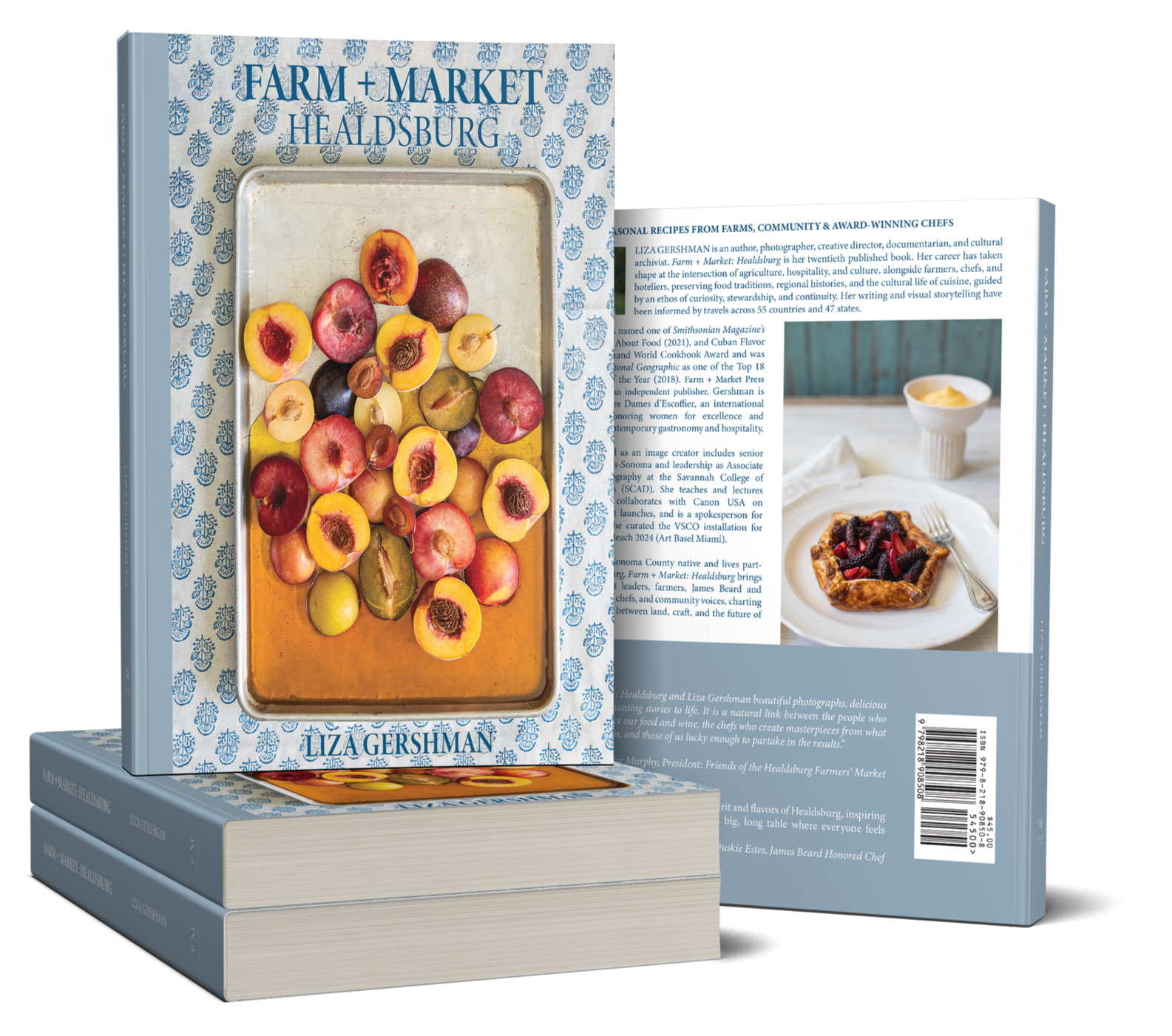 Farm + Market Healdsburg is more than a collection of recipes—it’s a celebration of the town’s vibrant farms, community, and culinary traditions. Created in partnership with the Healdsburg Certified Farmers’ Market and the Friends of the Healdsburg Farmers’ Market (501-c3), and brought to life by author and photographer Liza Gershman, a Sonoma County native and Healdsburg local, this book celebrates our heritage, community, and honors the people and flavors that make Healdsburg’s food and agriculture special.